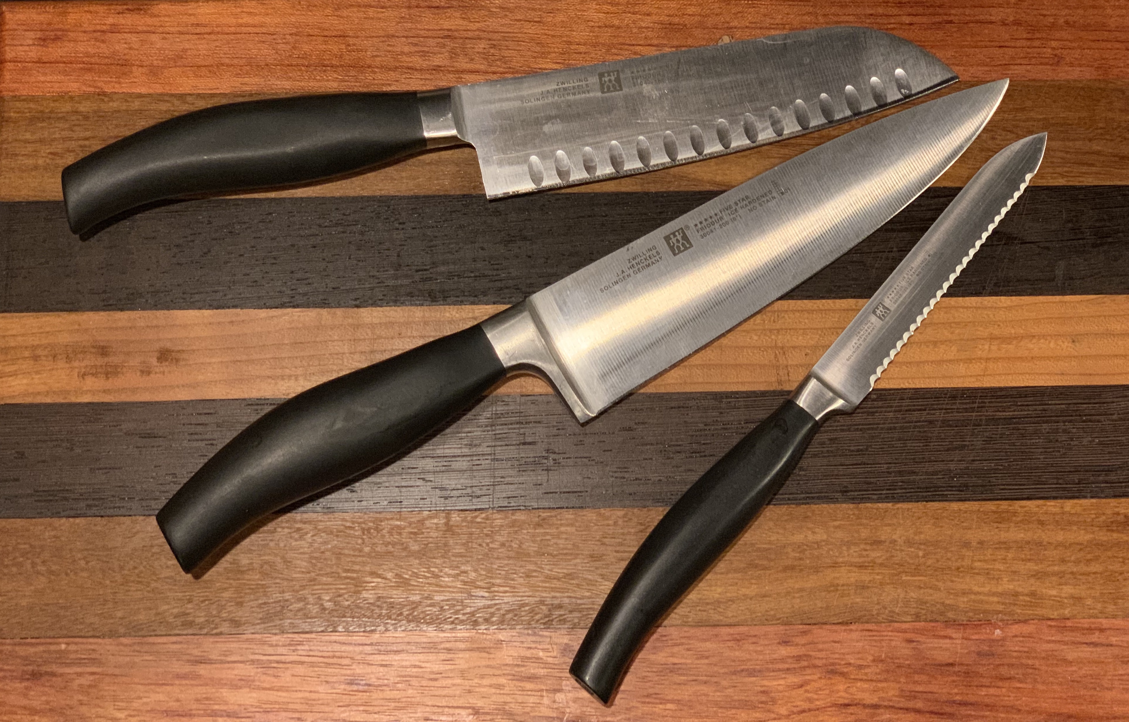 So now that you have these newly sharpened knives, how do you keep them that way? Most people aren’t going to like this first part, but never, ever put them in the dishwasher! The detergent used to take that baked on food out of your dishes is abrasive enough to take the edge off your knife. Always carefully wash by hand and hand dry if possible. Leaving a truly sharp knife to drip dry in the other clean dishes could be asking for trouble. Another method to help keep them sharp is to store them in a knife block. This keeps them from getting banged around in the drawer. If you just can’t live with that clunky old block sitting on the counter, consider investing a few dollars in blade covers or an in-drawer knife holder. A magnetic strip on the backsplash is another option. Whichever you prefer, just find a way to keep each knife in its own space so the blade isn’t taking unnecessary abuse. Cutting boards are another factor. Nothing is better for that blade than a good hardwood cutting board, but they can harbor some pretty mean bacteria if not handled appropriately. If you prefer something other than hardwood boards, go with a softer plastic style cutting board and never use glass. Glass cutting boards are hard enough to force the knife edge to curl and dull. Finally, use a good steel to hone the edge every now and then. Big Mike knows he’s not the only one in the house using the kitchen knives, so it’s not unusual for him to hone his knives each time he uses them. Just a few even strokes per side will keep that edge in proper shape. Just don’t try to steel your serrated knives. How long until you need them sharpened again? Well, that all depends on how you take care of them and how often you use them. Follow these guidelines above and they’ll go for quite some time between sharpenings.